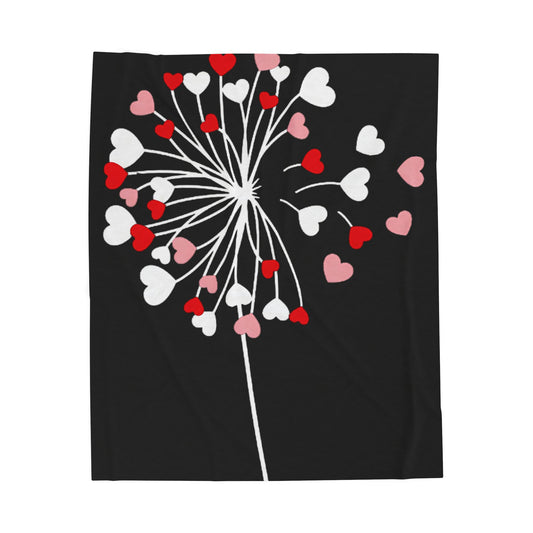 Dandelion Heart Velveteen Plush Blanket, Valentine Plush Blanket, Wildflower Blanket, Dandelion Blanket Valentines Day, Valentine Flower