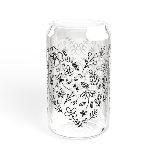 Floral Heart Sipper Glass, Boho Flower Heart Design Sipper Glass, Cute Nature Lover Sipper Glass, Minimalist Botanical Heart Sipper Glass,