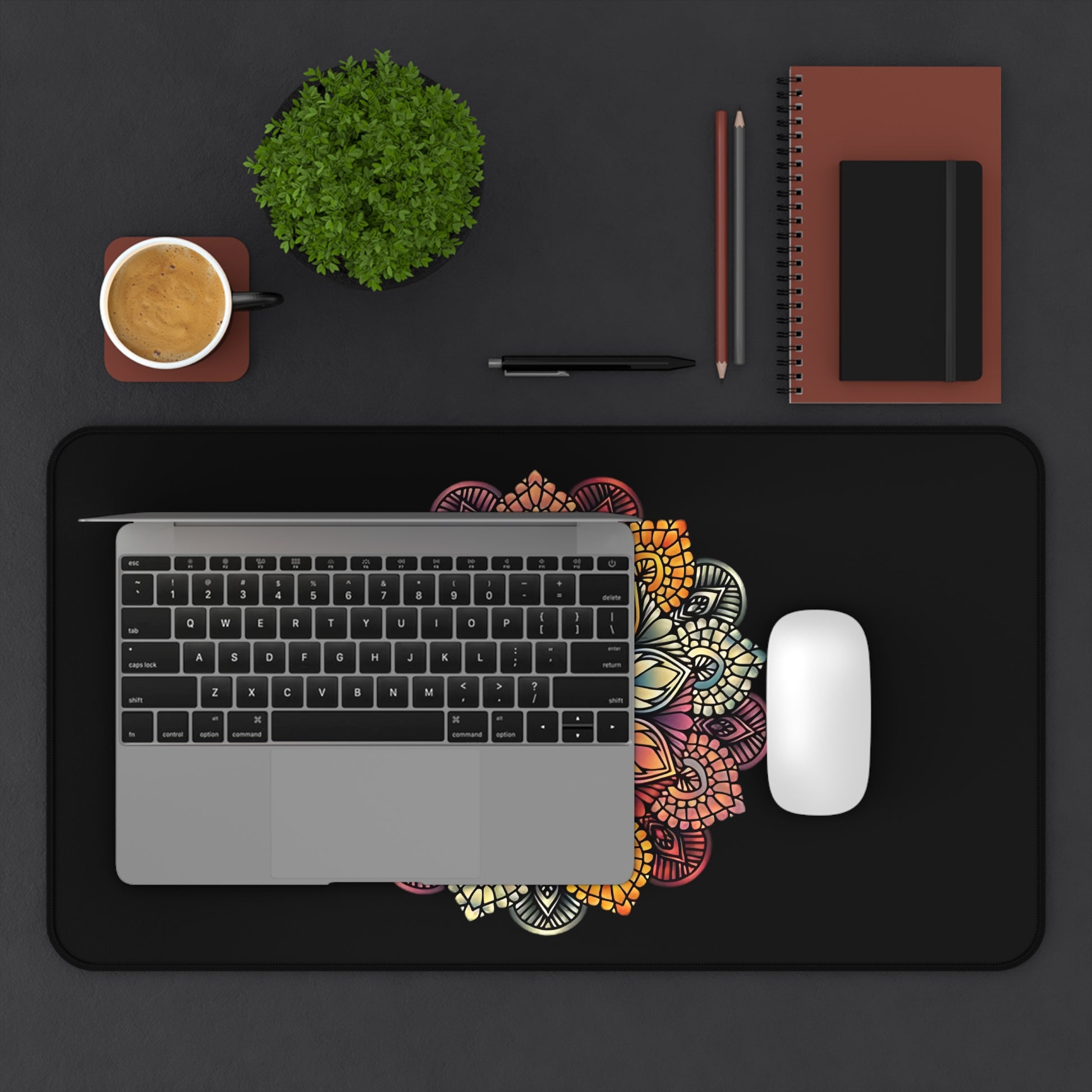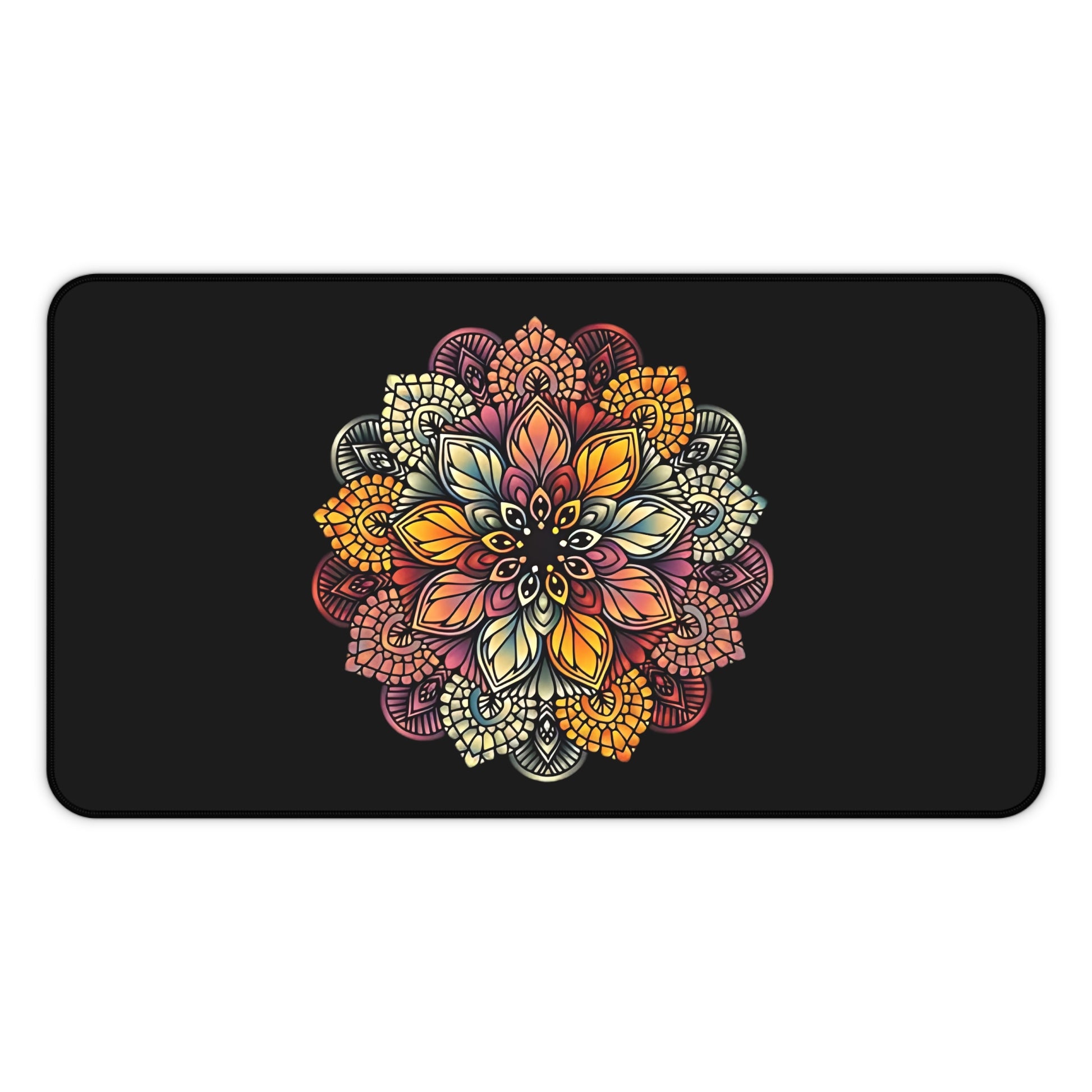 Mandala Floral Printed desk mat for natural lovers boho style mouse pad. Bring a touch of nature and bohemian vibes to your workspace with this vibrant and versatile desk mat. Perfect for writing, typing, or crafting, this desk mat features a non-slip bottom, vibrant colors, hemmed edges, and is made of 100% Neoprene. Whether you're an artist, writer, or crafter, this desk mat is perfect for adding a pop of color and functionality to your workspace.